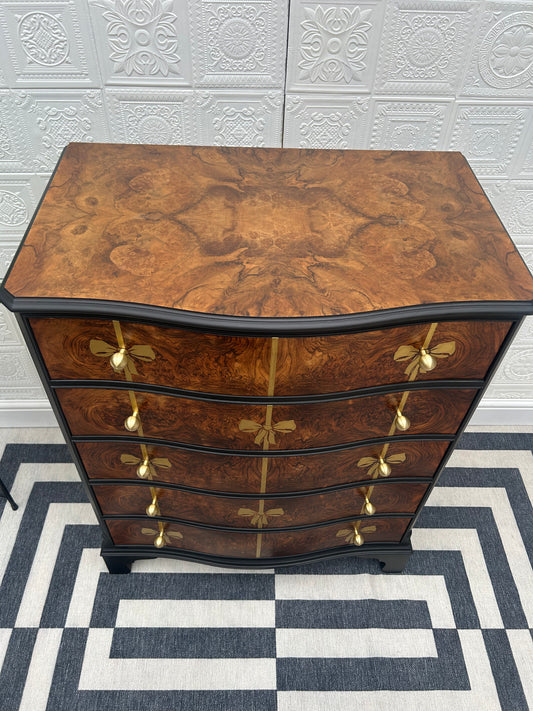 Bespoke Vintage 'Cameo by Sklan' Large Chest of Drawers / Handcrafted Elegant Gold Bows /Upcycled by Indulgebyanya